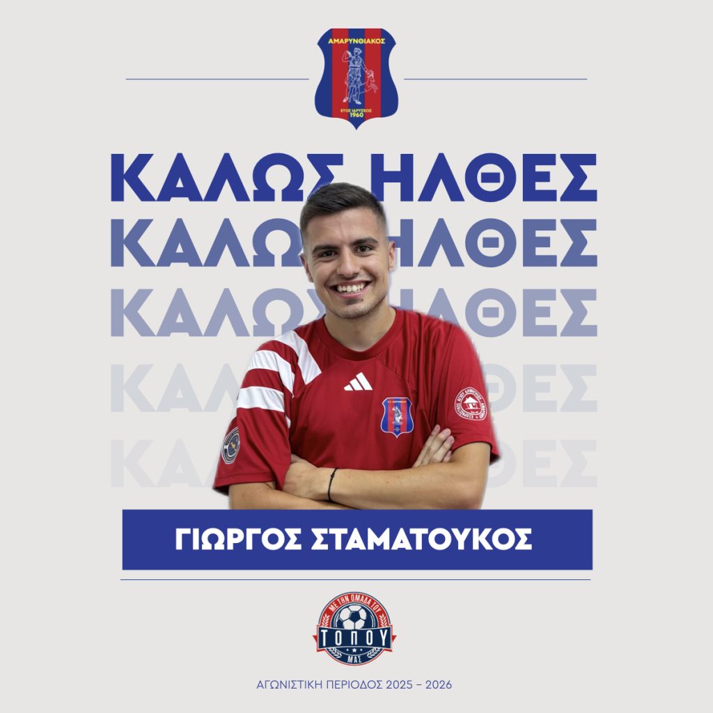 Ο Αμαρυνθιακός ανακοινώνει την έναρξη της συνεργασίας με το Γιώργο Σταματούκο, ο οποίος θα ενισχύσει τη μεσοεπιθετική γραμμή της ομάδας για τη νέα αγωνιστική περίοδο στη Γ’ Εθνική Κατηγορία.